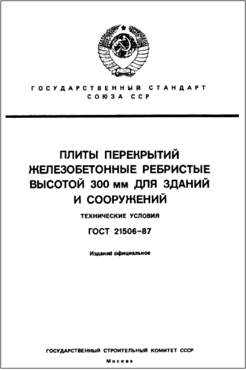ГОСТ 21506-87. Плиты перекрытий железобетонные ребристые высотой 300мм для зданий и сооружений