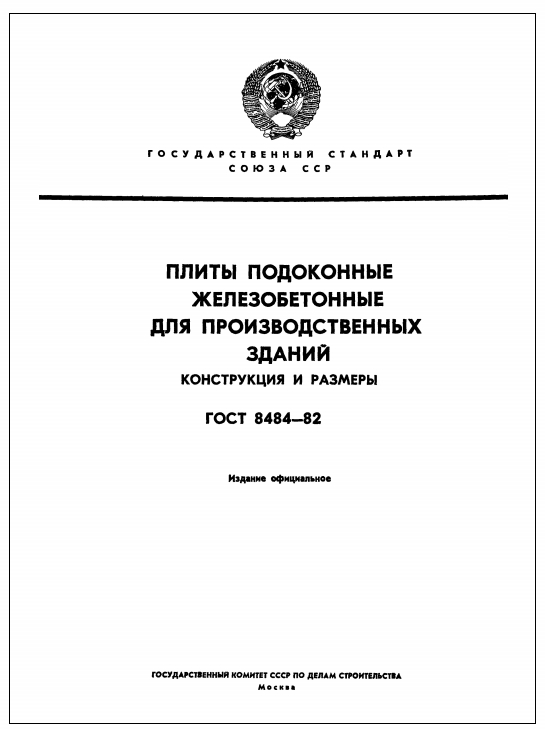 ГОСТ 8484-82. Плиты подоконные железобетонные для производственных зданий