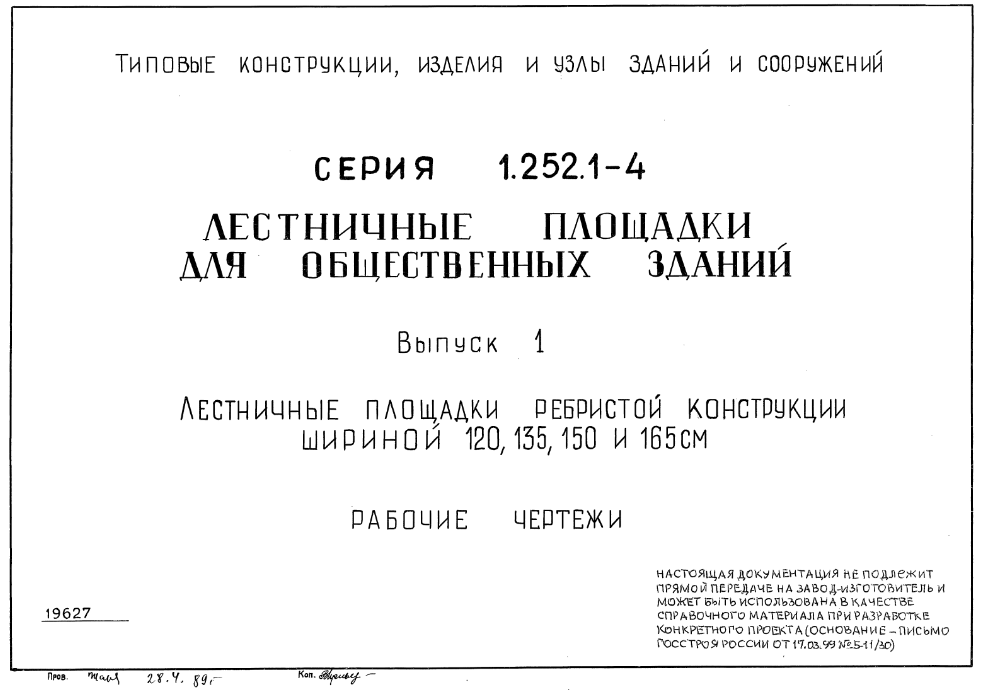 Выпуск 1. Лестничные площадки ребристой конструкции шириной 120.135.150.165