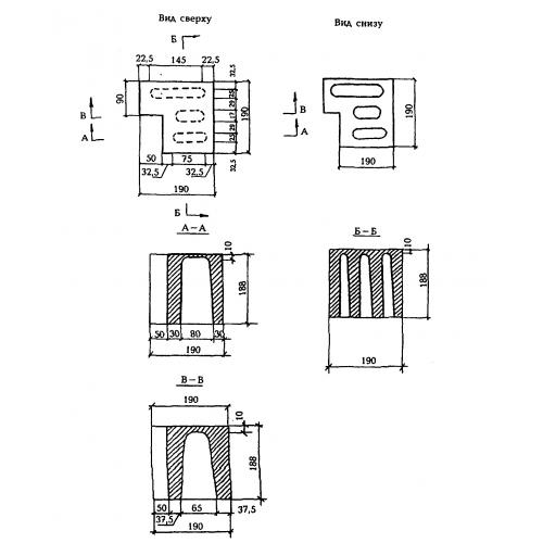 Камни для кладки стен КСР-УГ-ПС 19. Унифицированные изделия, имеющие прямоугольную форму с рядом конструктивных особенностей в виде выступов, углублений и отверстий.